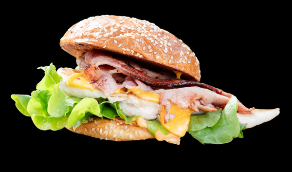 Potato Bun, Grilled Chicken Breast, Cheese, Bacon, Lettuce and Burger Sauce