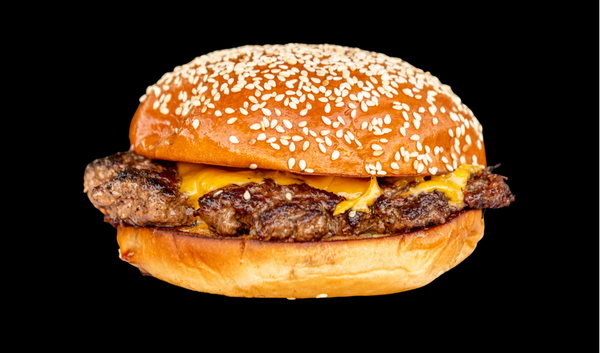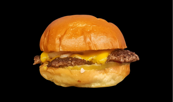 Potato Bun, Two Smash Patties, Cheese, Onion, Pickle Ketchup and Mustard