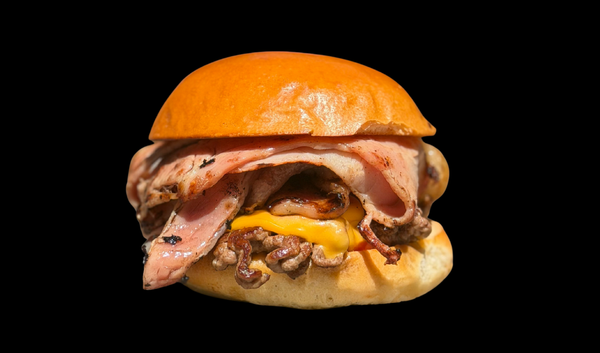 90g Potato Bun, Smash Pattie, Cheese, Bacon, Onion, Pickle and Sweet Baby Rays BBQ Sauce
