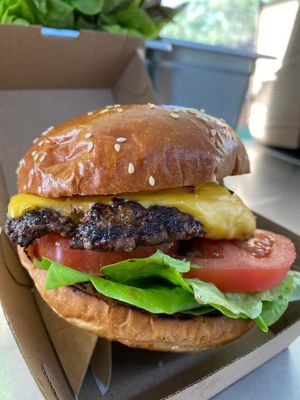 Potato Bun, Smash Pattie, Cheese, Lettuce, Tomato, Ketchup and Mustard
