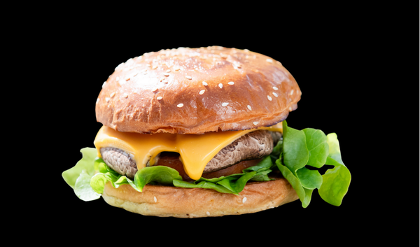 Potato Bun, Portobello Mushroom, Cheese, Lettuce, Tomato and Burger Sauce